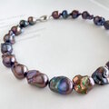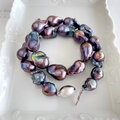 大きめのオイスターパールは良く見かけますが、小ぶりのオイスターは少し珍しいかもしれません。面白い形のバロック型で、色も不思議なので見ていて飽きません。