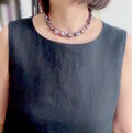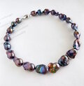 Mサイズのオイスターパールを中心に置いて、滑らかなグラデーションに組んだチョーカー。パールは1粒1粒個性のある形ですが、裏も表も照りツヤ良く、