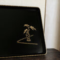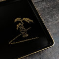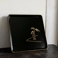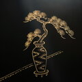 花器に松の一輪挿し◆古輪島塗 漆芸黒塗沈金四方脚付き膳 盆 漆器 骨董・antiques 工芸品 大正〜昭和初期