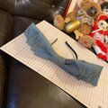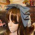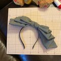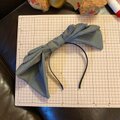 着物リメイク ヘアアクセサリー 和洋折衷 ヘッドドレス・カチューシャ・カチューム 青灰色の地に描かれた繊細な縞模様 R-76