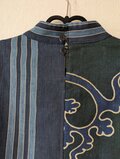 古布リメイク ロールカラーのチュニックベスト 筒描き 縞木綿 刺し子 藍染 着物リメイク