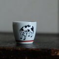 静止する牛(丑)◆九谷焼 色絵金彩猪口 昭和レトロ 干支 酒器 コレクション 古民家 古道具 i2