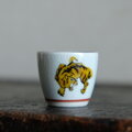 吠える虎(寅)◆九谷焼 色絵金彩猪口 昭和レトロ 干支 酒器 コレクション 古民家 古道具 i2