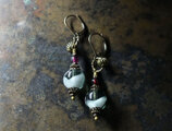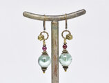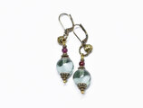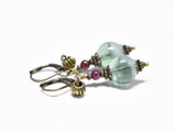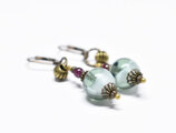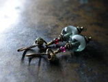 グリーングレーフランスヴィンテージビーズとガーネットのピアス