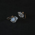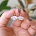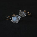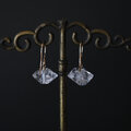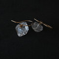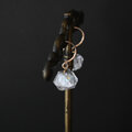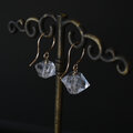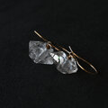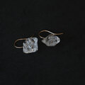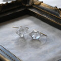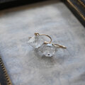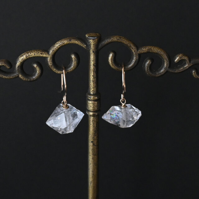 カットされていない採掘されたままのパキスタン産ダブルポイントクリスタル(※)の原石を使ったピアスです。さまざまな色形をもつ石の中からニュアンスのあうピースをチョイスし、世界にひとつだけのピアスをつくっています。