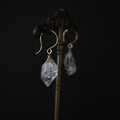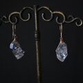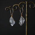 カットされていない採掘されたままのパキスタン産ダブルポイントクリスタル(※)の原石を使ったピアスです。さまざまな色形をもつ石の中からニュアンスのあうピースをチョイスし、世界にひとつだけのピアスをつくっています。