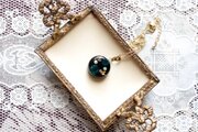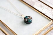 黒に溶けそうなピーコックグリーンのお花がエキゾチックなカラーリングのペンダント。