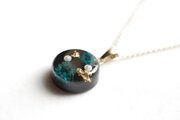 レジンアート ラウンドペンダント〈眠る孔雀〉