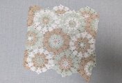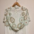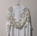 とても柔らかく肌触りの良いコットンと涼感のあるリネンが合わさった糸で編んでおります。花モチーフを一つ一つ丁寧につなげました。