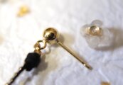 イヤリング金具 : 真鍮にk18ゴールドメッキ、ねじばねタイプ(シリコンカバー付)。