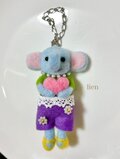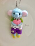 羊毛フェルトで作ったゾウのバッグチャームです。