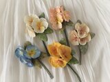 すべて一枚一枚カットし、染めて、こてあてした染め花です。