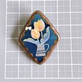 とても繊細な絵が描かれていて素晴らしいです。 どのように描かれているのでしょうか? 線があまりにも細くてびっくりしました。 こんなに繊細なブローチを着けられることが嬉しいです。 有難うございました。