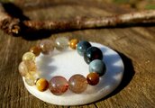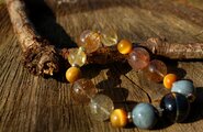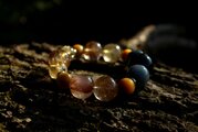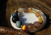 神からの示唆のような直感、商売運を高める大粒のホークスアイ、クリソベリルはコミュニケーション能力を高め、金運のお守りにもなる石です。シトリンは、富と財産、そして幸運の石。ルチルは財運と仕事運をアップさせてくれます。ルチルは、広い視野と洞察力、判断力、集中力を高め、物事を成功へと導きます。すべての石のエネルギーが、バランスよくハーモニーを奏でて、あなたの仕事運、金運を高めてくれるブレスレットです。