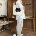 こちらはもふもふネコトートバッグ。リサイクル品(新品)にもふもふネコをつけました。