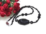 ・中白い線が入ったブラックオニキスのパーツを使ったネックレスです。