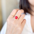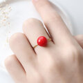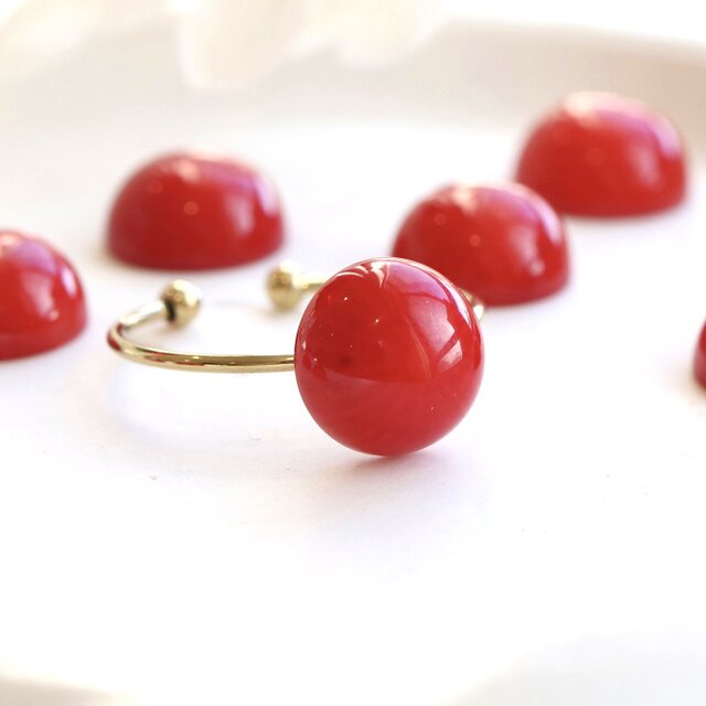 レッドコーラル(珊瑚)一粒フリーリング|3月誕生石|フリーサイズ ーfun day offー