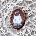 青い目のとても愛らしい猫ちゃんのブローチで、早速付けて楽しんでいます。ありがとうございます♪