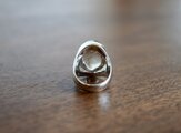 このリングは、腕の部分のボリュームがあるため、普段のサイズより1.5~2号ほど大き目のサイズをお勧めしますが、石留の前に一度ご試着をお願いさせていただければと思います。ご試着の際には、ポスト投函にて返信できるよう、返信用の封筒を同封いたします。(写真は石留をする前の状態です。縁を倒して覆輪留にいたします)