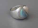 リングのサイズは13号、重さは18g、最大幅は20mm、金属部分は純銀です。