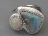 どちらもオーストラリア産のオパール、三角形は原石を研磨したブラックオパールです。