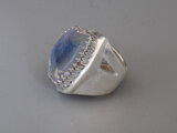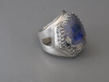 リングのサイズは13.5号、重さは30g、最大幅は32mm、金属部分は純銀です。