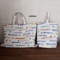 トレイン柄の入園バッグ5点セットが出来上がりました!