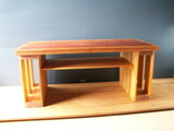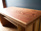 天板は屋久杉無垢板厚さ7ミリを合板12ミリに貼り使用、その他部材は杉・ヒノキを使用。