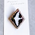 とても繊細な絵が描かれていて素晴らしいです。 どのように描かれているのでしょうか? 線があまりにも細くてびっくりしました。 こんなに繊細なブローチを着けられることが嬉しいです。 有難うございました。