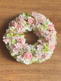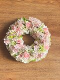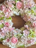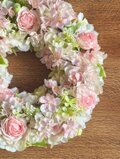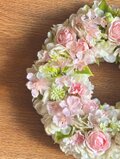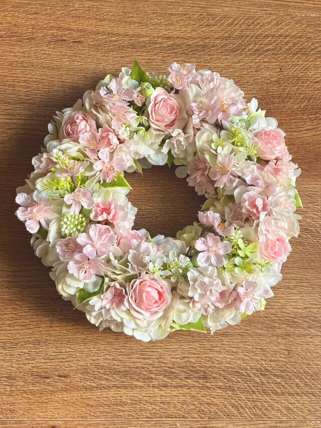 ふんわり淡い色合いで仕上げた桜とバラのリースです