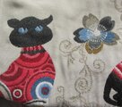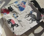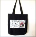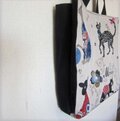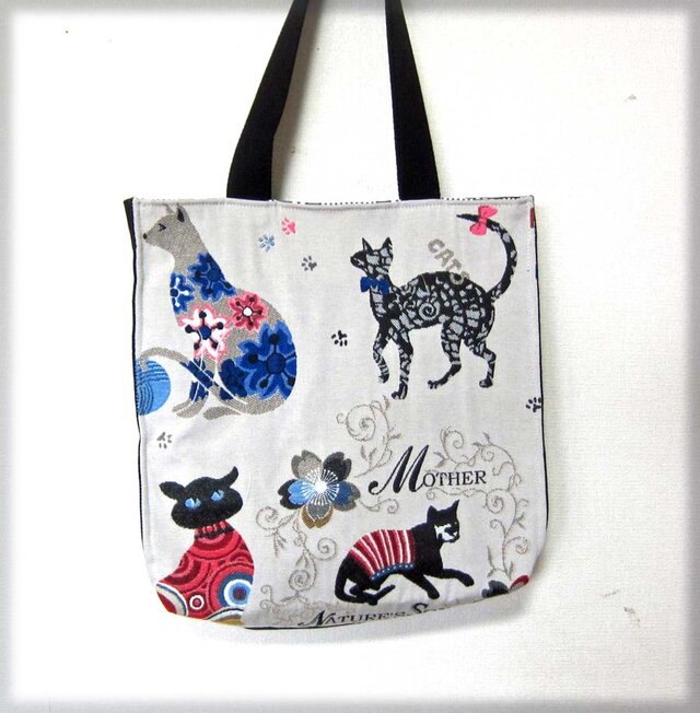 片方は黒帆布に 別のスペイン生地の猫のポケットを付けて スナップボタンで