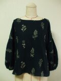黒地×花柄刺繡生地のラウンドネックバルーン8分丈袖のプルオーバーです♪