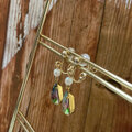 西ドイツ製ヴィンテージガラス、アイリスガラスと手巻きガラスパール(ホワイト)のイヤリング No.C820
