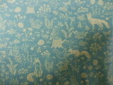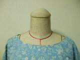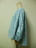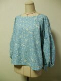 綿麻素材 水色地×生成り色動物柄 ラウンドネックバルーン8分丈袖プルオーバー S~Mサイズ 受注生産