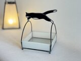 黒猫の可愛い持ち手が特徴のガラス製小物入れ。