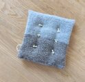 中に白い原毛を入れたのでふっくらと厚手になりました。マットというよりは小さな座布団のようです。