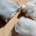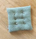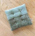 中に白い原毛を入れたのでふっくらと厚手になりました。マットというよりは小さな座布団のようです。