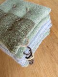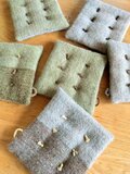 グリーン系とブルーグレー系、全部で5種類あります。表裏の組み合わせや、糸止めの色が違います。お気に入りを見つけてください。