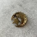 イギリスから仕入れたヴィンテージの七宝焼きエナメルブローチ。月と星をモチーフにしたデザインが特徴で、精緻なエナメル装飾が施されています。金属フレームの透かし細工も美しく、時代を超えた優雅な雰囲気を醸し出しています。