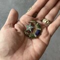 このブローチは、青や緑、金色のエナメルが美しく輝き、細やかな装飾が際立ちます。イギリスで仕入れたこの一品は、19世紀末から20世紀初頭の手工芸技術の粋を集めた逸品。アンティークならではの風合いと、手作業の温かみを感じることができます。