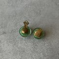 丸みを帯びたガラスのフォルムに、グリーンの美しいマーブル模様と金箔(アベンチュリン)が織り込まれたデザイン。