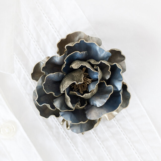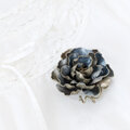 革のコサージュ オールドローズ(アンティークブルー)2wayタイプ