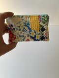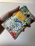 多色のパッチワークデザインで、ジッパー付きの布製小物入れ。