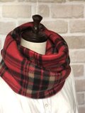 ボリュームたっぷり❣️フリースのあったかスヌード❤️ビビットレッドチェック