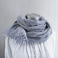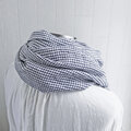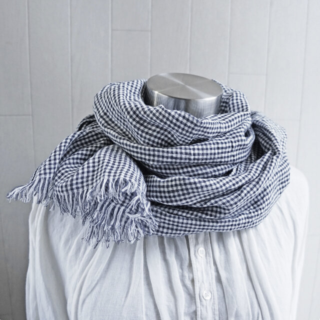 東炊きリネンのストール ギンガムチェック ネイビー×白