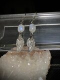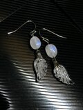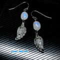 クリスタル 水晶 羽根 約8×15mm ブルームーンストーン タンブル 約6×8mm スリランカ産 ハンドメイド セミロング フックピアス
