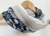 秋冬物BWBブルーホワイトボタニカル柄&フラワーハンドメイドネックウォーマー
