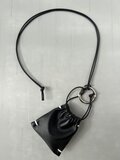 上品でクラシカルなメッシュコード、ミニミニサイズがキュートなトレンドの巾着バッグ、インパクトのあるパイソン柄モチーフクッションチャームの3点セットです