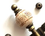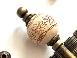 ベージュの素朴なウッドビーズに茶色いレリーフ模様が彫られています。