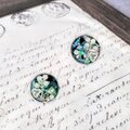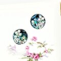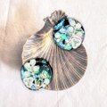 花のレースとグリーン螺鈿のラウンドピアスイヤリング【2117】